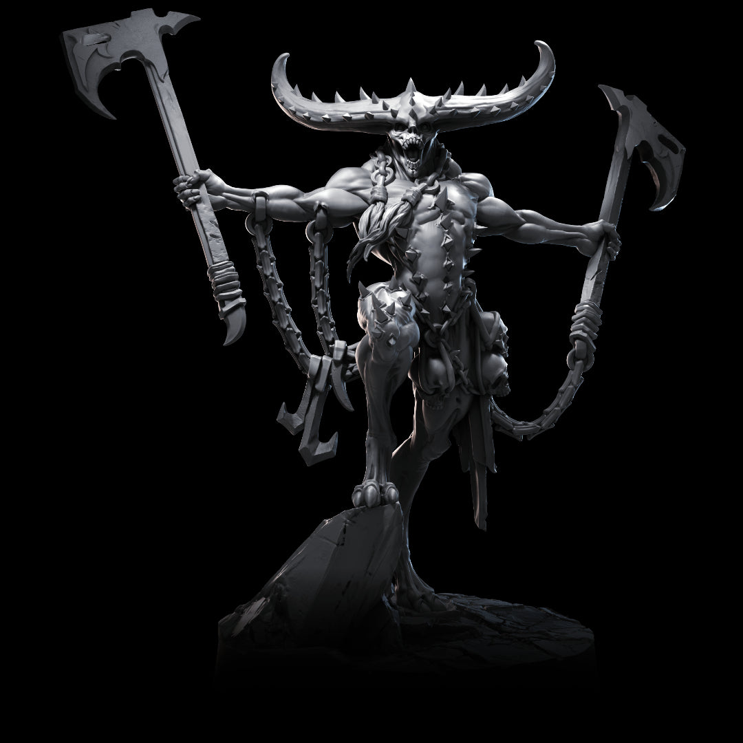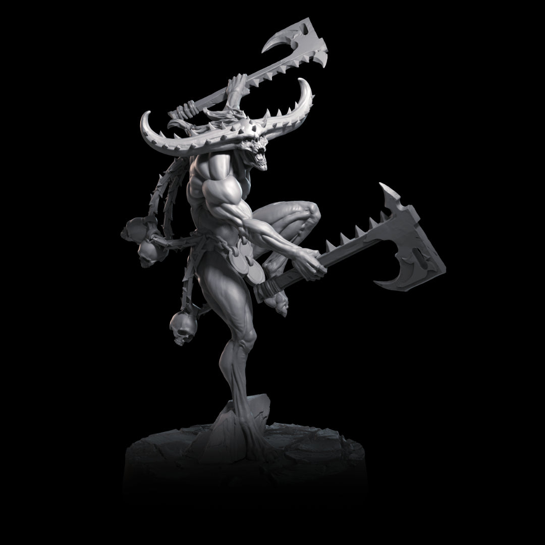 They go to war unclothed, believing armour to be a coward’s barrier against divine judgment. Every scar, every seared patch of skin is worn as sacred testimony to their devotion. In place of armour, they adorn themselves with grisly trophies: chains of skulls, hooks bearing severed heads, and iconography forged in ash-blackened iron. Their weapons are savage and asymmetrical - cleavers, flensing axes, hooked glaives - designed not only to kill but to mutilate, leaving a message of divine wrath in their wake.