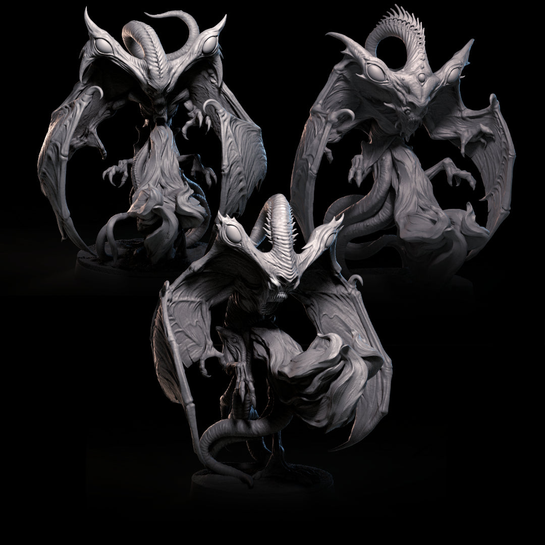 The Fugues of Malifica are grotesque beings that serve as the custodians of arcane knowledge within the sinister domain of Ugul Hul. These large, winged creatures are the keepers of the Tendril Digests, specialized repositories of information stored within the preserved tendrils of their kind. These digests are kept in alchemical brine to maintain their integrity, and the Fugues use crystalline implements to extract and insert knowledge directly into their minds. Their appearance is a nightmarish blend of sinewy flesh, membranous wings, and multiple grasping tentacles that they use to handle their dark tomes and arcane instruments.