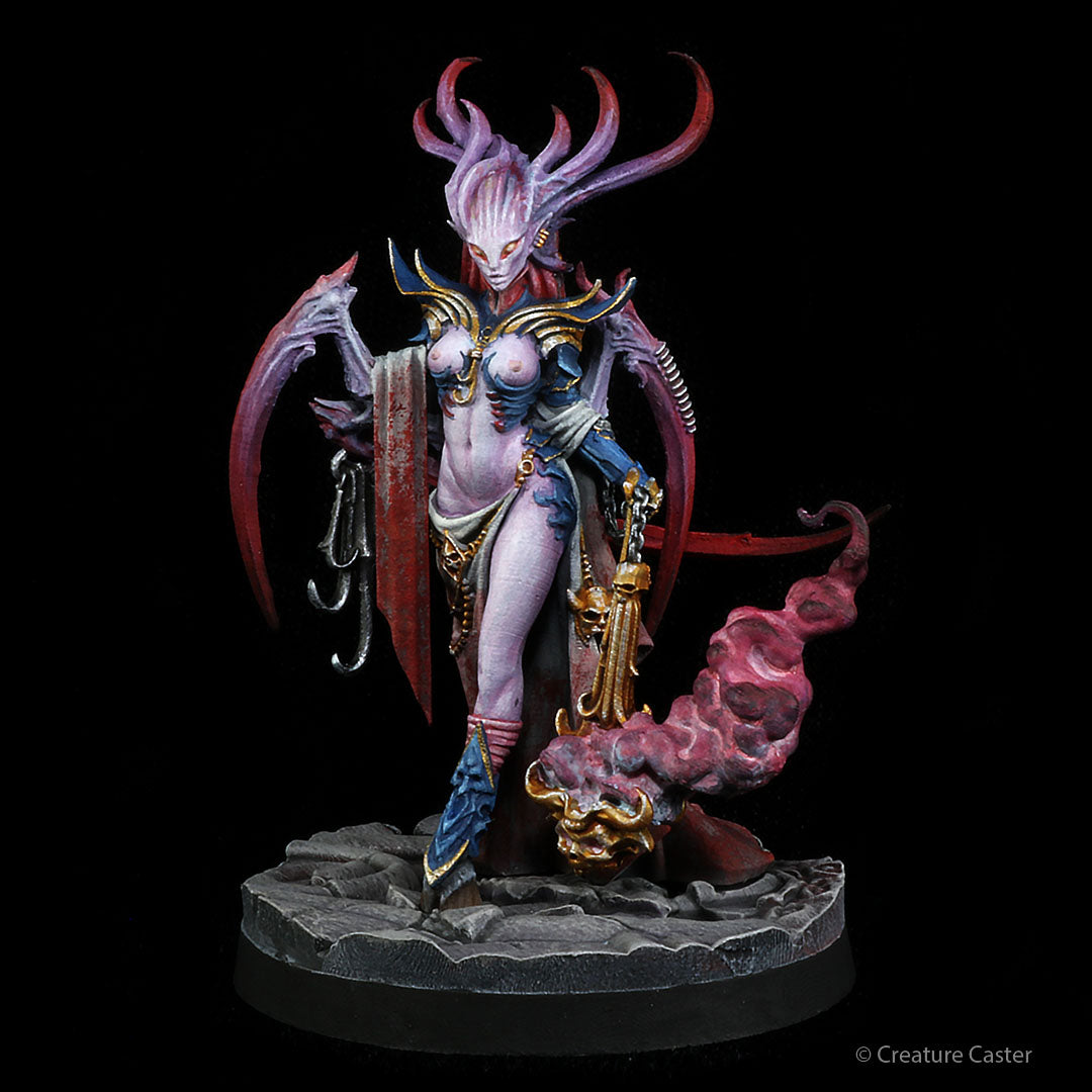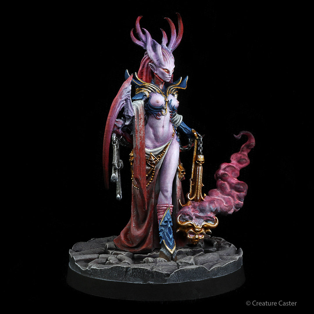The path of the Priestess is one filled with unholy ritual, debauchery, and bloody sacrifice. The common demonic practice of torturing both the willing and unwilling becomes an elaborate process: filled with dark blessings, vile chanting, and profane magics. Their followers worship them as an extension of the divine, and their dark powers make them formidable in battle.