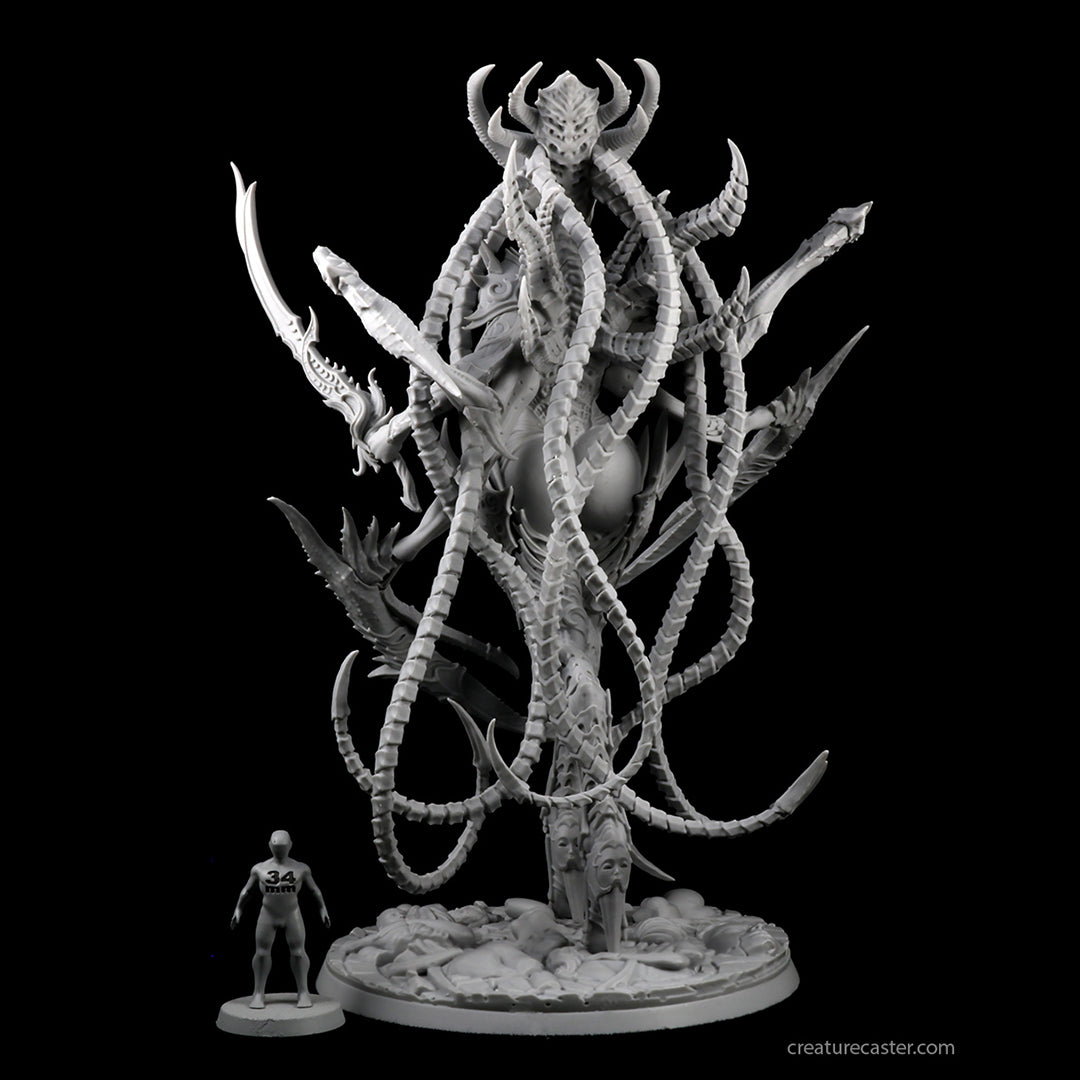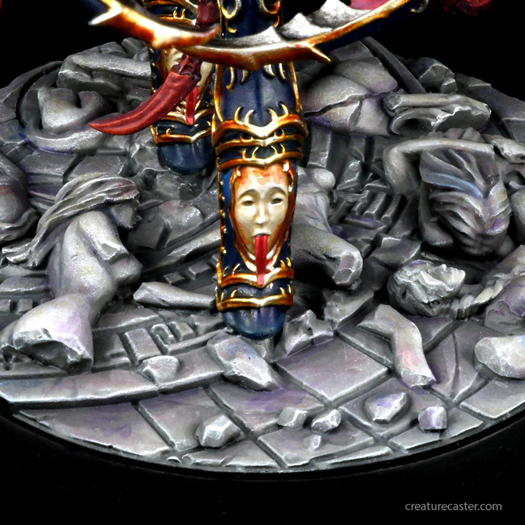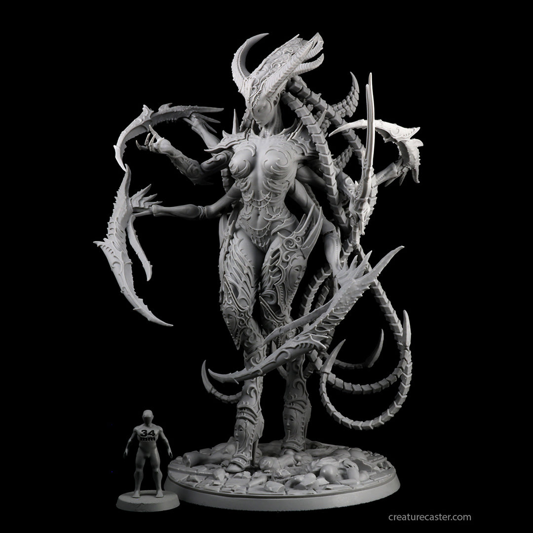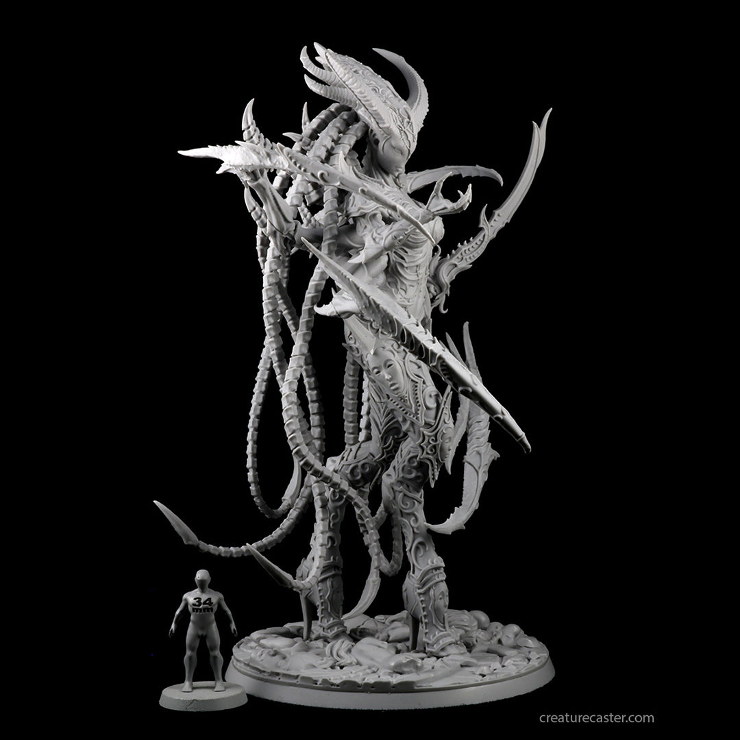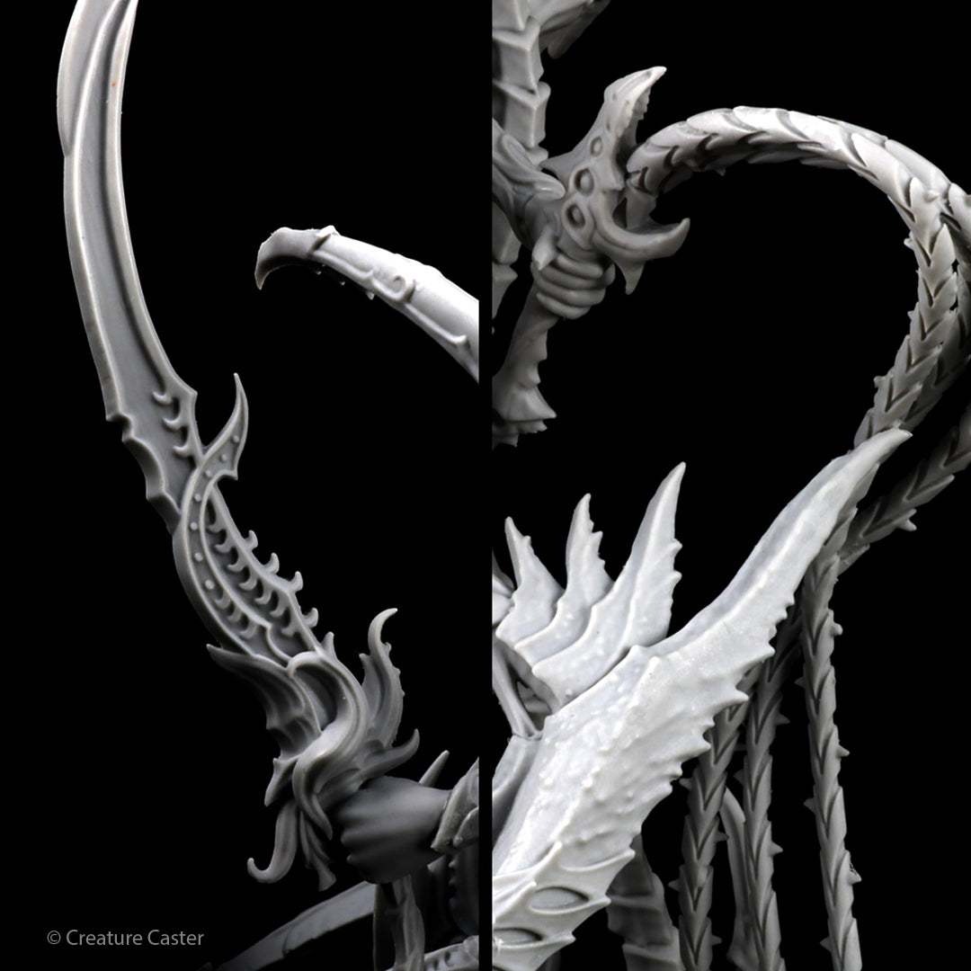 The first of the Creature Caster Queens glides alluringly onto the world’s stage. The Queens of Ecstasy are the most powerful embodiments of their faction. They command legions of lesser demons who are slavishly dedicated to them. The demons of Ecstasy, and those who have devoted themselves to their cause, exist in a state that is beyond mundane reality. They joyously partake in extreme acts of frenzied debauchery and excess. Their euphoria takes them beyond the bounds of reason, and they impulsively indulge in any act that takes their fancy. Their lives are endless orgies of sadomasochistic pleasures, and unrepentant desires.